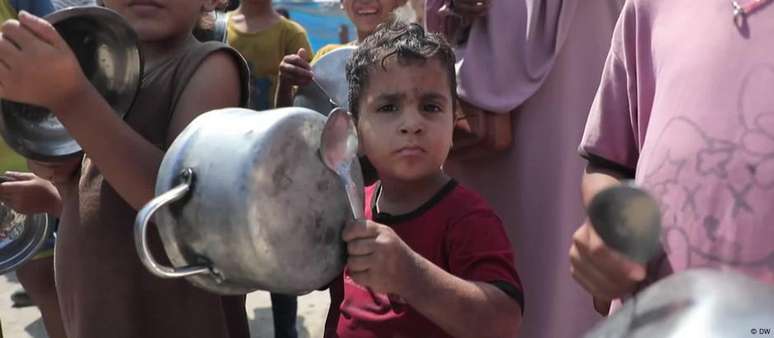 Segundo a ONU, 63 óbitos por desnutrição ocorreram em julho. "Fatos são inegáveis", diz secretário-geral da organização. Mas autoridades israelenses rejeitam números relativos à falta de alimentos.O primeiro-ministro de Israel, Benjamin Netanyahu, disse que não há "fome" nem "política de fome" em Gaza. Entretanto, a declaração, feita no último domingo (28/07), durante evento com uma rede de TV evangélica em Jerusalém, contrasta diametralmente com evidências vindas do enclave palestino.