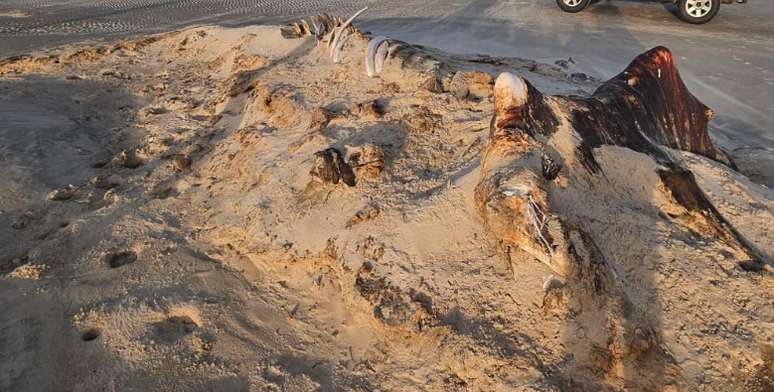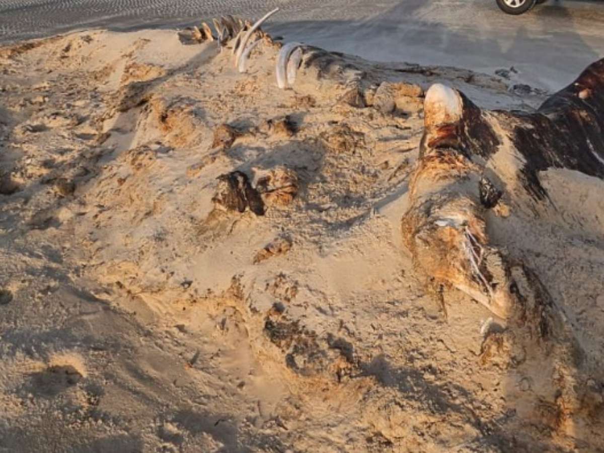 Esqueleto de baleia é encontrado após trajeto por estrada do Talhamar