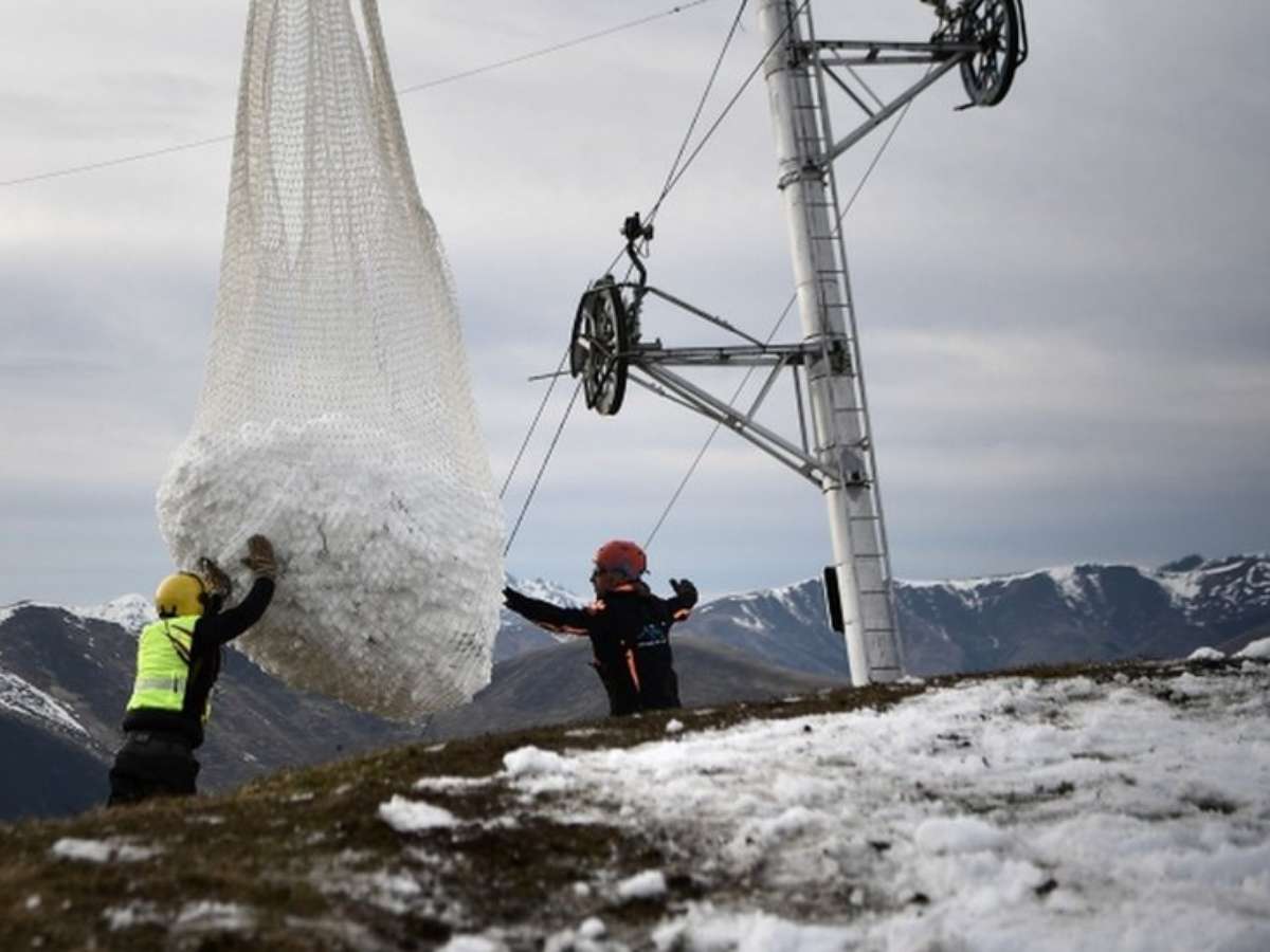 Um resort de ski na França tem usado helicópteros para transportar neve que será usada para cobrir trechos secos da pista.