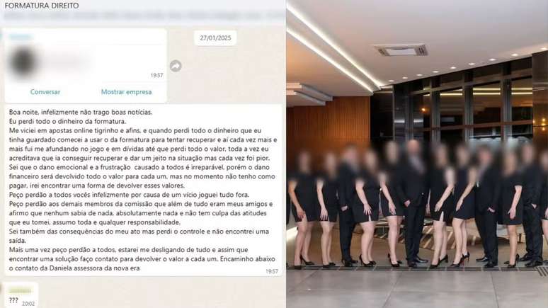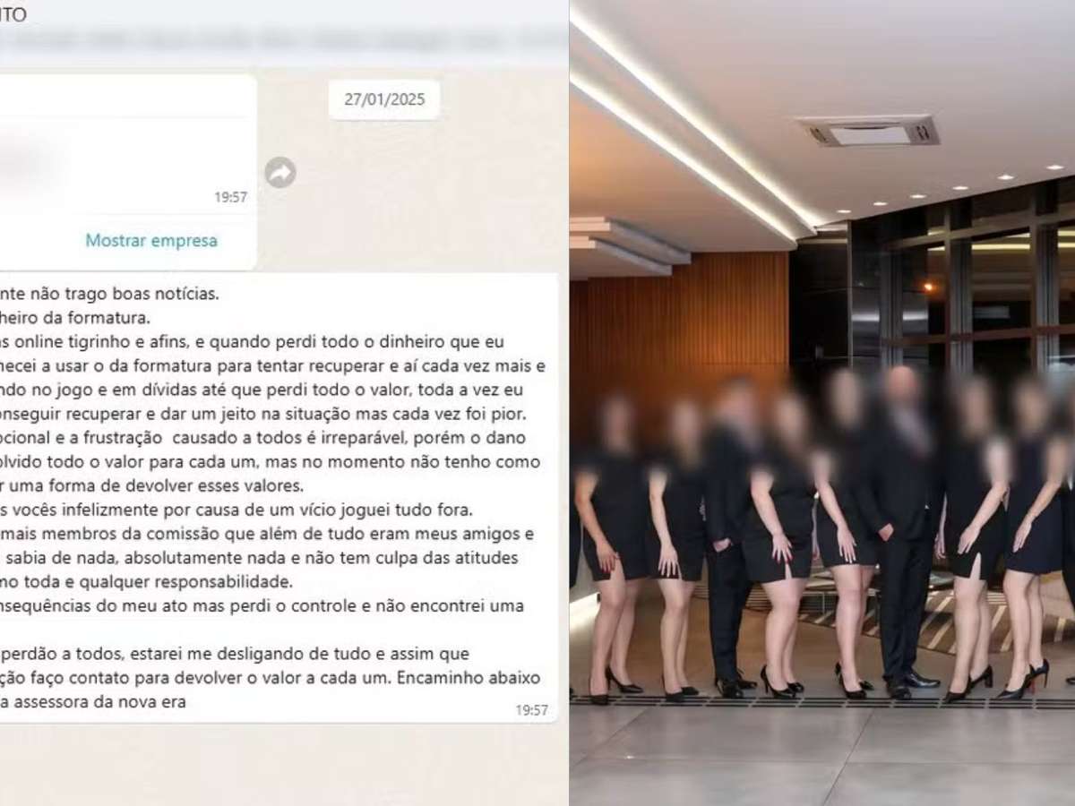"Eu perdi todo o dinheiro da formatura. Me viciei em apostas on-line, Tigrinho e afins, e quando perdi todo o dinheiro que eu tinha guardado, comecei a usar o da formatura para tentar recuperar. E aí, cada vez mais fui me afundando no jogo", dizia a mensagem.