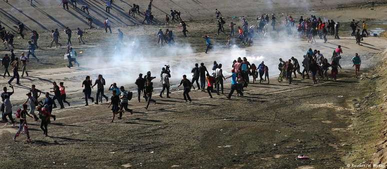 Um grupo de migrantes da caravana centro-americana, que participava de uma marcha, avançava em direção à passagem de San Ysidro quando desviou da rota prevista para tentar atravessar o muro entre os países por outros pontos. A patrulha de fronteira usou gás lacrimogêneo para evitar a ação.
