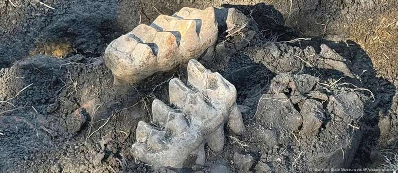 Morador cuidava do jardim quando viu dois dentes gigantes. Ossada é a mais completa identificada no estado de Nova York na última década.Uma mandíbula de um mastodonte foi encontrada por acaso no quintal de uma residência no estado americano de Nova York, informou o Museu do Estado de Nova York nesta quarta-feira (19/12).