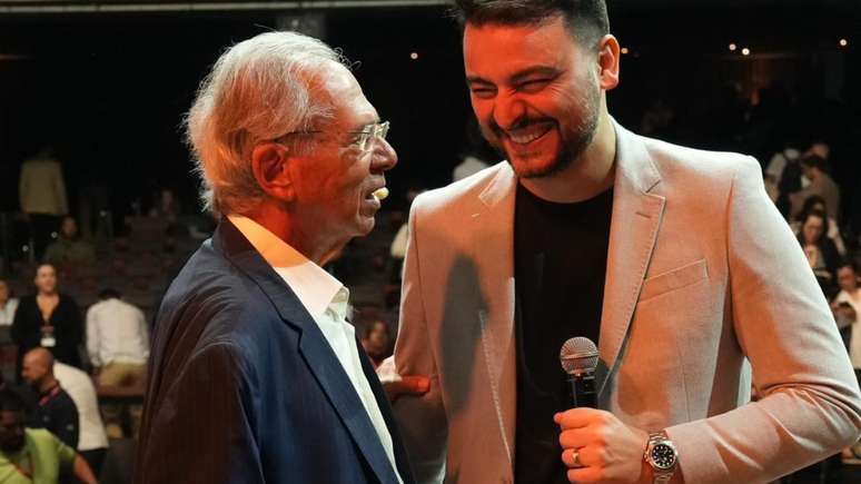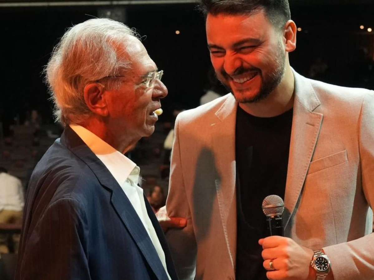 Durante o encontro, que ocorreu na quinta-feira (30), Guedes adotou tom crítico em sua fala, destacando os desafios da Economia brasileira, ao passo em que questionou a plateia sobre gastos públicos, inflação e juros. De forma irreverente, Souza presenteou o economista com chocolates artesanais e brincou que, "o ex-ministro poderia enxergar os negócios com um olhar mais doce". Bem-humorado, Guedes sugeriu que, "aos 75 anos, não deveria exagerar no açúcar", e distribuiu o mimo para a plateia.
