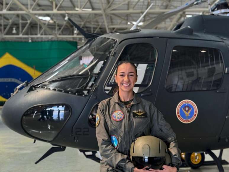 Emily Braz é a primeira mulher a concluir o curso de aviação da força terrestre, após mais de 1.800 horas de treinamento.