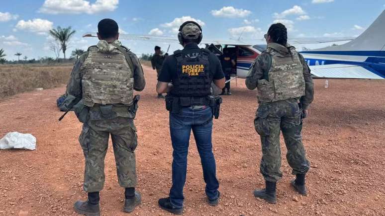 Momentos depois, a aeronave suspeita pousou em uma pista de terra, e o piloto fugiu. O avião foi vistoriado e apreendido pela Polícia Federal (PF).