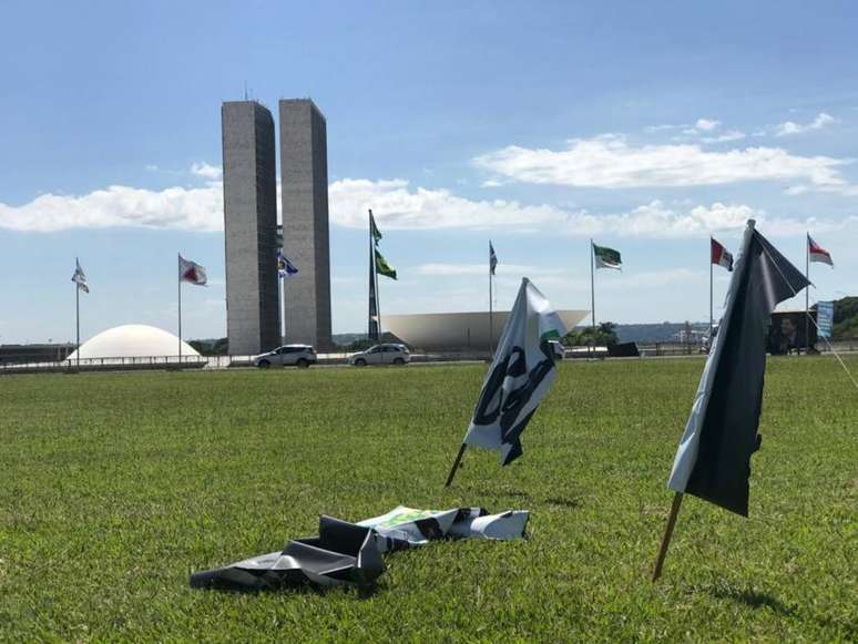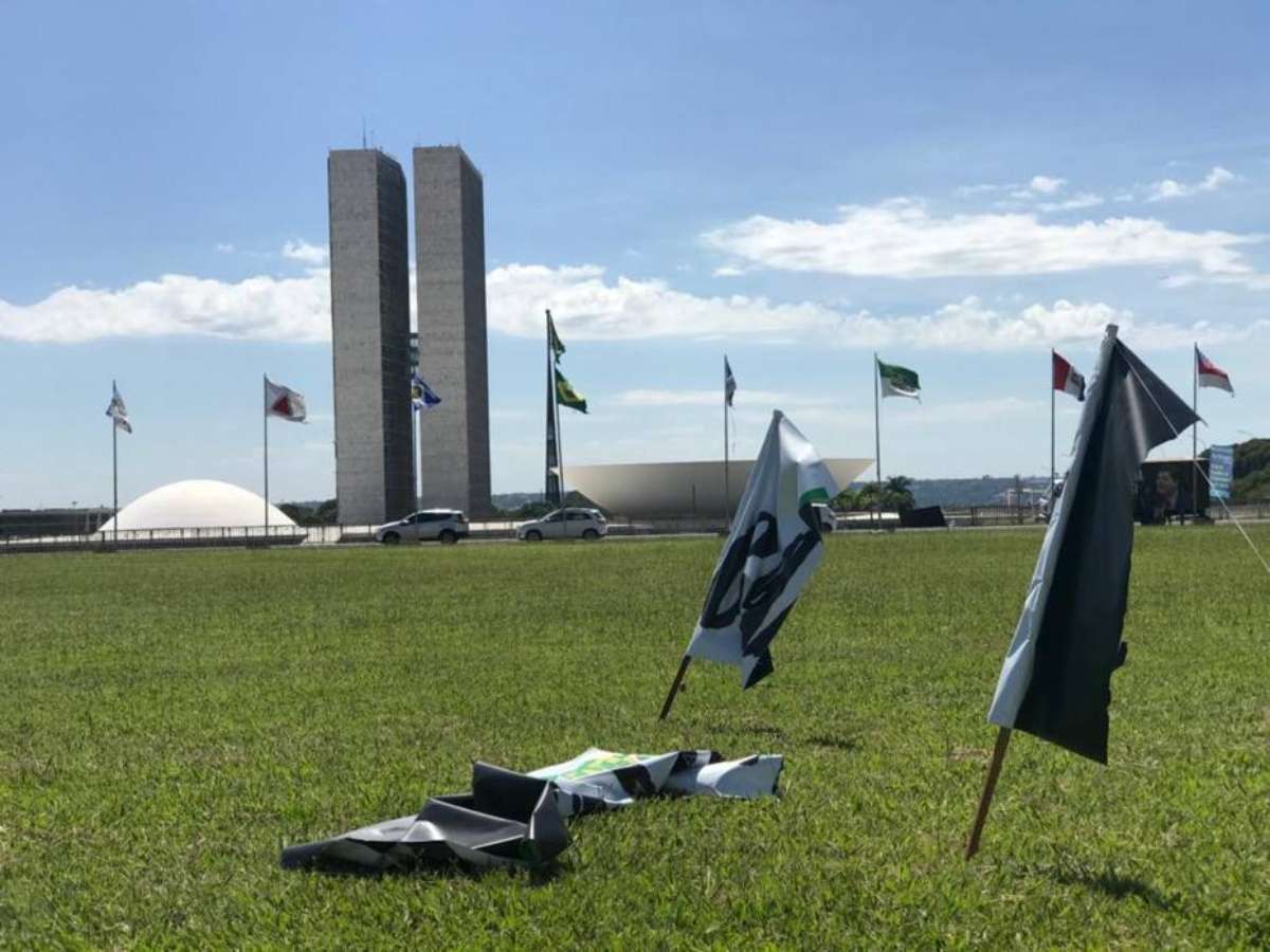 Faixas da campanha de Baleia Rossi amanhecem destruídas na Esplanada dos Ministérios
