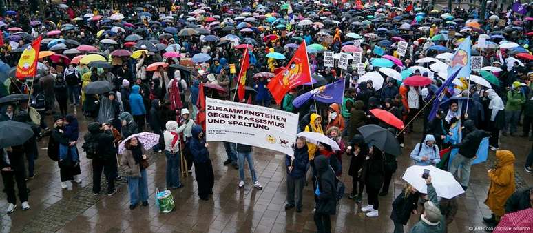 Em Magdeburg, no sul do país, algumas centenas de pessoas também protestaram. Houve também uma vigília em Leverkusen no oeste do país. Já Bielefeld foi palco de um protesto na sexta-feira, que reuniu pelos menos 4 mil pessoas, incluindo uma deputada federal do Partido Social-Democrata, legenda aliada da União Democrata-Cristã (CDU) de Merz na coalizão de governo federal.