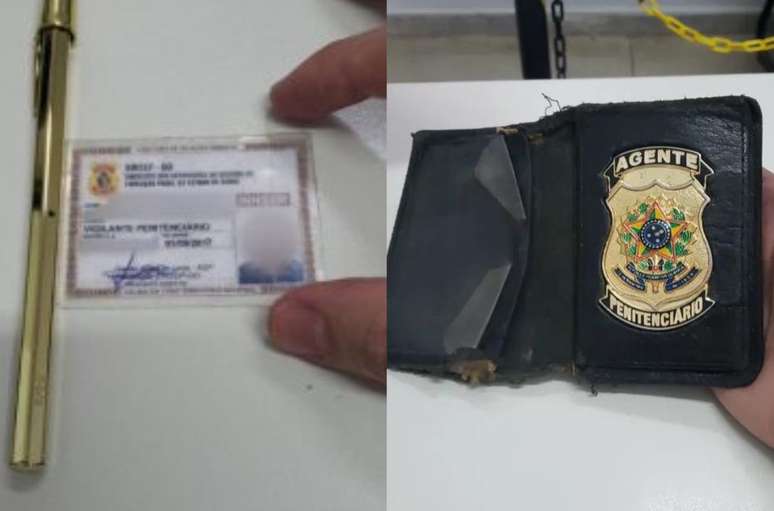 Suspeito trabalha como segurança e portava uma carteira funcional de couro que o identifica como agente penitenciário