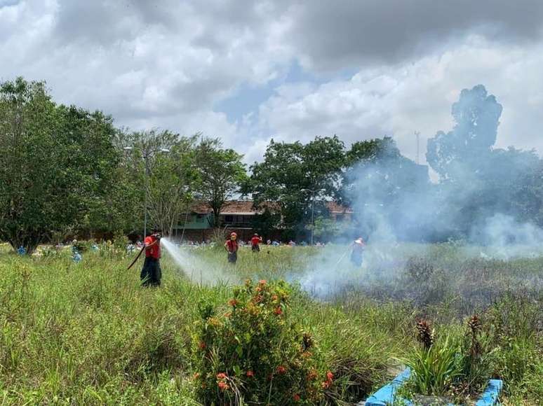 Um incêndio atingiu o cemitério público Parque do Tapanã, em Belém (PA), nesta quinta-feira, 13, após uma família soltar fogos de artifício durante o velório de um parente. De acordo com a Agência Distrital de Icoaraci (Adic), ninguém ficou ferido.
