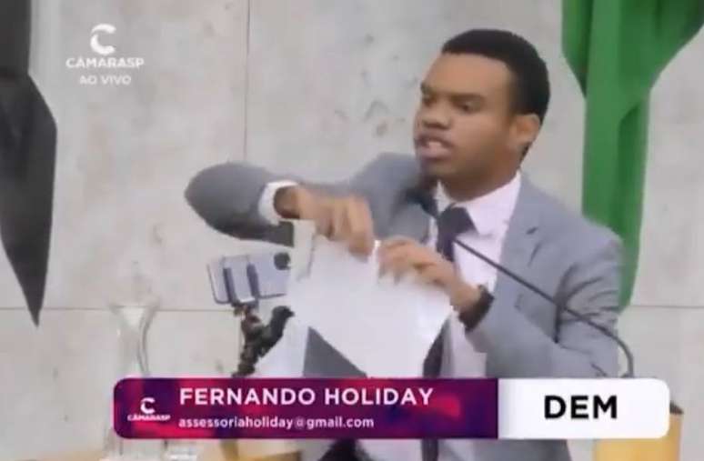 SÃO PAULO - Uma das principais lideranças do Movimento Brasil Livre (MBL), o vereador Fernando Holiday usou o microfone do plenário da Câmaranesta quarta-feira, 11, para anunciar publicamente sua saída do DEM. O parlamentar rasgou sua filiação durante a discussão de um projeto de lei que pretende limitar o serviço de transporte por aplicativos na capital.