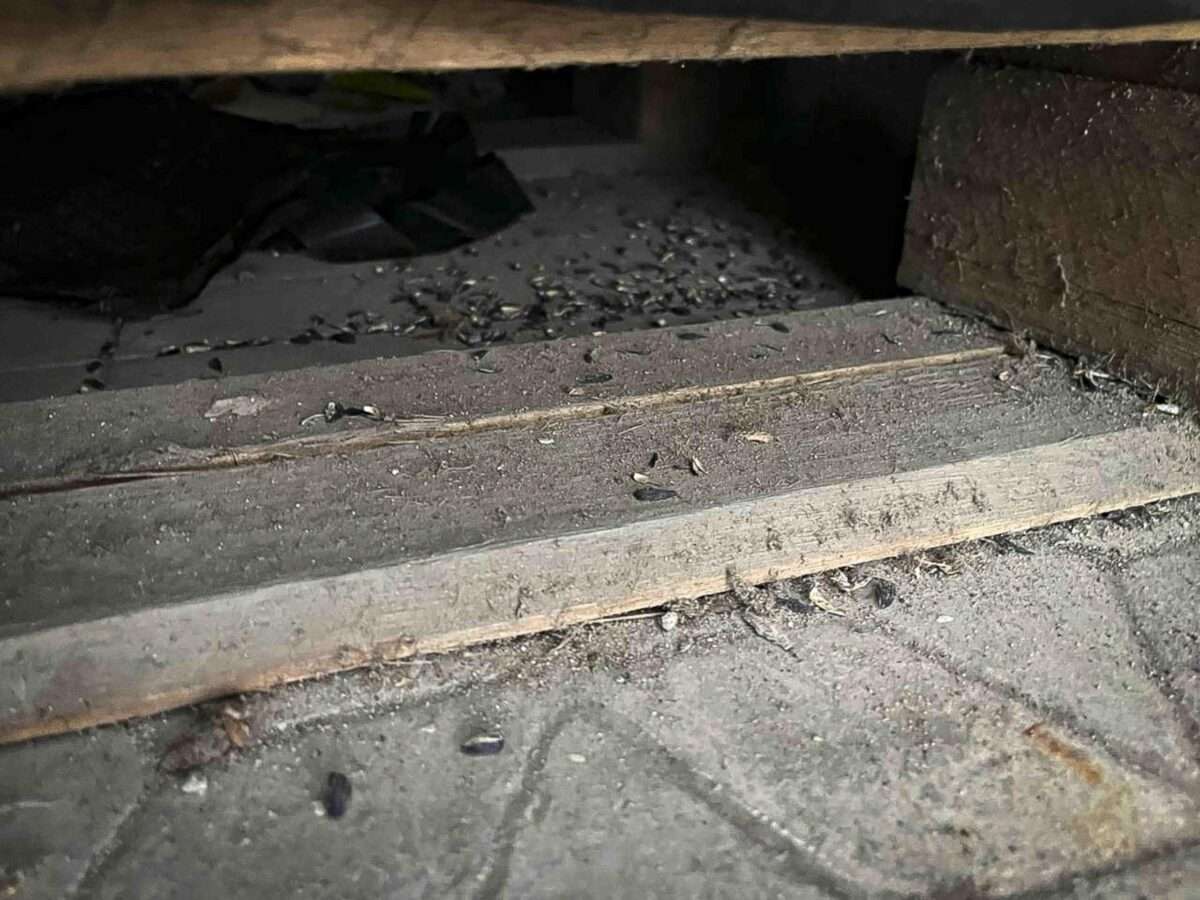 Durante a vistoria, foram constatados indícios de infestação por roedores, além de teias de aranha, traças, mofo, frestas em portas e acúmulo de sujeira, comprometendo totalmente as condições de armazenamento de alimentos. Os produtos com potencial contato com fezes ou urina de ratos deverão ser descartados pela empresa.