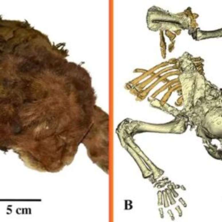 O animal tinha cerca de três semanas de vida quando morreu, mas o congelamento natural manteve detalhes impressionantes, como pelos, garras e até bigodes.