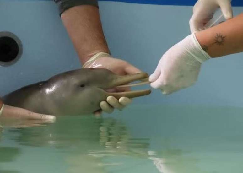 Filhote de toninha resgatado no Uruguai recebe cuidados no RS