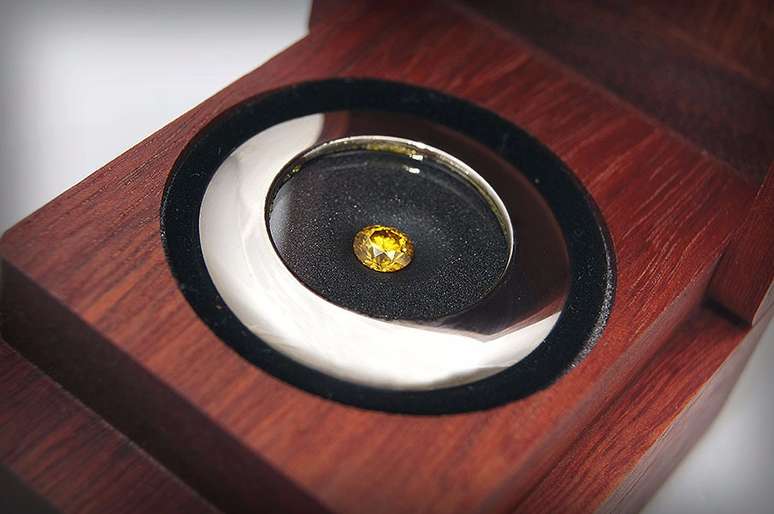 O DIAMANTE - A empresa oferece de cortesia para os clientes o serviço de lapidação da pedra em formato "brilhante", redonda e com mais de 50 facetas. Os tamanhos variam, chegando até em 1,5 quilate (7,3mm). Dentre as opções de cores, o cliente pode escolher a tonalidade amarela, azul ou branca. A opção mais vendida custa em torno de R$18 mil.