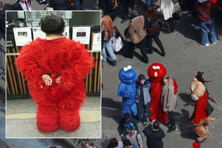 Mulher vestida de personagem da Vila Sésamo é presa nos EUA. "Nas últimas semanas, prendemos o Homem-aranha, o Batman e o Garibaldo. Até mesmo Peppa Pig já ficou agressiva conosco", disse um policial. (Foto: Reprodução/Mirror)