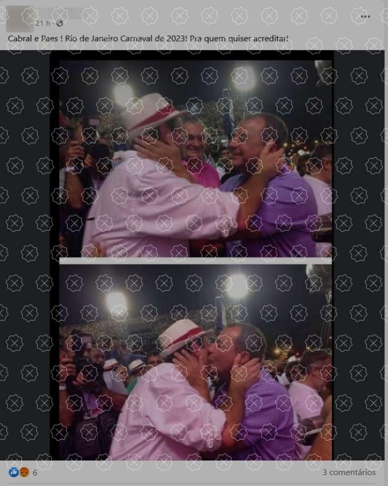 Fotos que mostram um encontro entre o prefeito do Rio de Janeiro, Eduardo Paes, e o ex-governador Sérgio Cabral, na Marquês de Sapucaí, não são de 2023, como afirmam publicações nas redes sociais. Os registros foram feitos pela jornalista Idiana Tomazelli, do jornal O Estado de S. Paulo, no Carnaval de 2016, em fevereiro daquele ano.