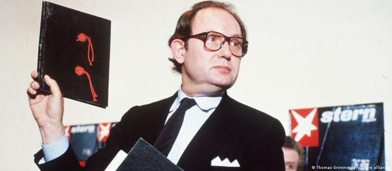 Tumulto, vozes excitadas, barulho de câmeras fotográficas, tempestade de flashes. Entusiasmado, o repórter da Stern Gerd Heidemann, que "descobriu" os diários, não resiste a posar com os cadernos pretos, 12 ao todo, cheios de supostas anotações pessoais do ditador nazista. As fotos correm mundo.