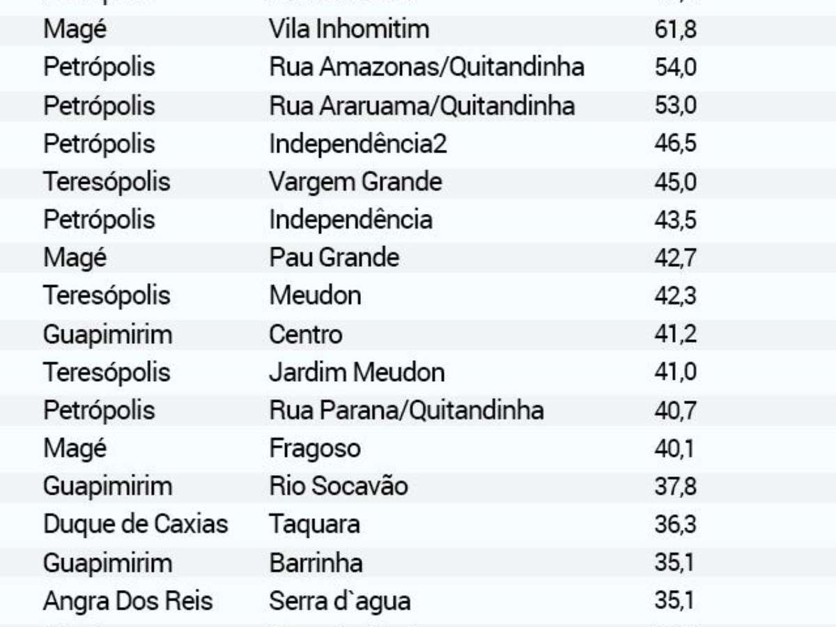 Veja quanto choveu em vários locais do Rio de Janeiro em 6 horas, segundo o