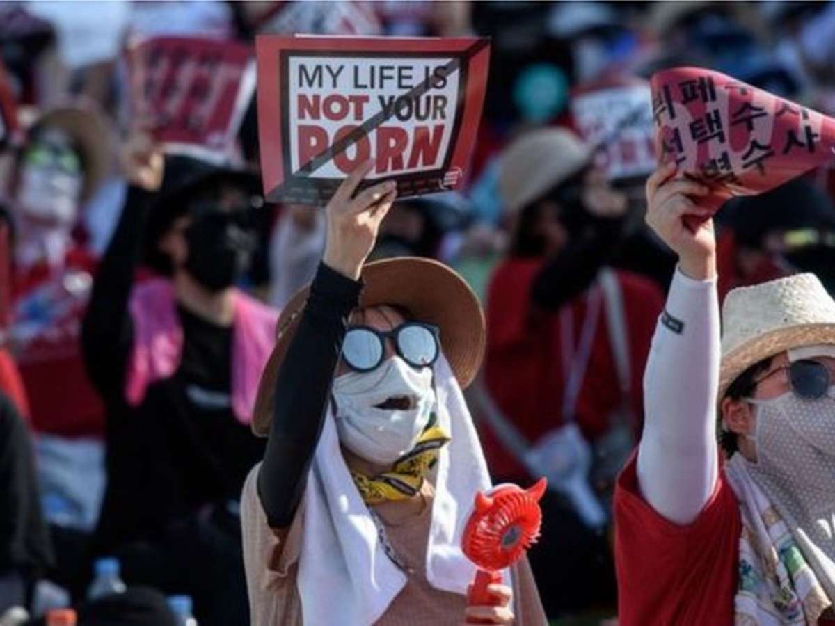 Mulheres organizaram enormes protestos de rua na Coreia do Sul, pedindo para que o governo tomasse medidas mais sérias contra a pornografia ilegal.
