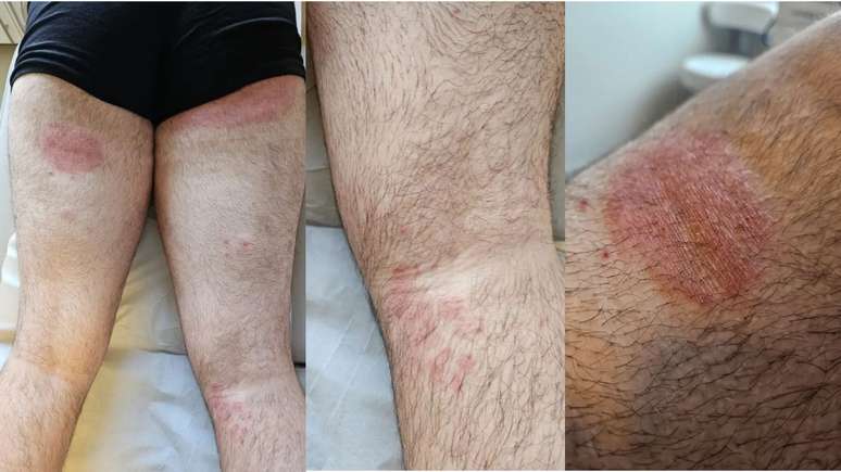 A dermatologista Renata Diniz, relatou ao g1 que o examinou, percebeu que as lesões na pele - nos glúteos e nas pernas - eram incomuns: grandes, vermelhas, com coceira e descamação. O paciente já havia tentado outros tratamentos, sem sucesso.