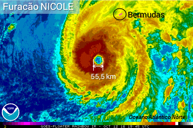 O arquipélago das Bermudas está em alerta máximo para a chegada do furacão Nicole no decorrer desta quinta-feira, 13 de outubro. Atualmente Nicole é um furacão de categoria 2 na escala Saffir-Simpson que mede a potência dos furacões e vai até o grau 5.