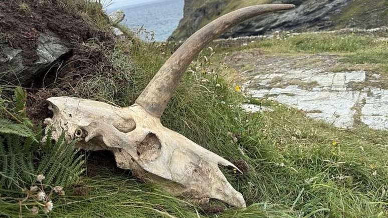 O viajante encontrou os restos raríssimos enquanto passeava por uma trilha de St Nectan's Glen, uma área sagrada perto do momumento em ruínas na Cornualha. O chifre longo e curvado logo despertou a atenção dele, que ficou chocado.