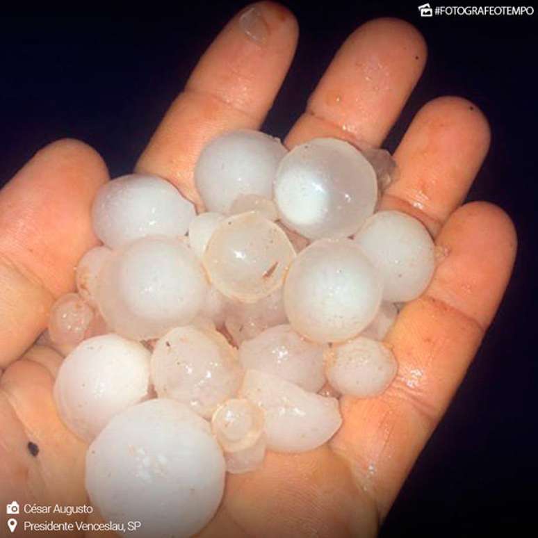 Em Rio Claro, as pedras de granizo foram assustadoras e causaram danos. Veja o comentário de Paulo Lopes: "Muita destruição em Rio Claro - SP, carros danificados, casas destelhadas com vidros quebrados e enormes granizos. Graças a Deus nenhuma notícia de feridos.
