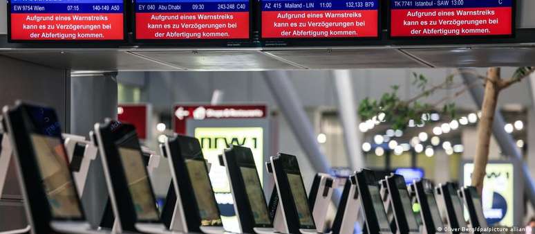 No aeroporto de Colônia/Bonn a paralisação foi prevista para começar já na noite desta quarta-feira.