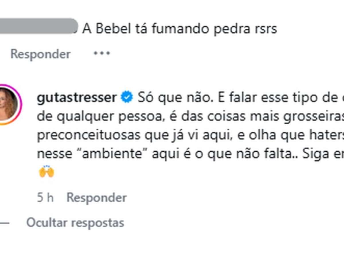 Entre as mensagens deixadas em sua publicação, frases sobre seu emagrecimento e até insinuações maldosas sobre o uso de substâncias ilícitas foram disparadas. Diante de um comentário particularmente agressivo, a atriz foi enfática ao classificar a atitude como uma das mais grosseiras que já presenciou. "Falar esse tipo de coisa de qualquer pessoa é das coisas mais grosseiras e preconceituosas que já vi aqui, e olha que haters nesse ambiente não falta", escreveu Guta, desejando que o autor da mensagem seguisse em paz.