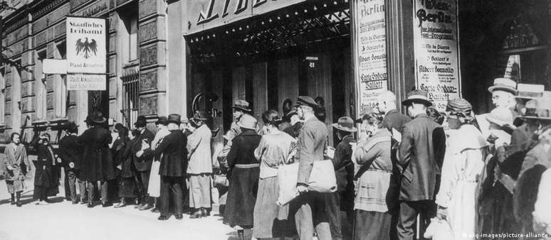 Em 1923, quando a economia alemã ainda sofria os efeitos da Primeira Guerra Mundial e pressão para pagar reparações, a hiperinflação devastou o pais. Economista traça paralelos com situação atual.A hiperinflação da República de Weimar foi uma das maiores crises econômicas da história da Alemanha. Ela se manifestou em 1923, quando a economia alemã ainda sofria com os efeitos da Primeira Guerra Mundial e era ainda mais pressionada pelas demandas da França por reparações após o Tratado de Versalhes, o acordo de paz do pós-guerra.