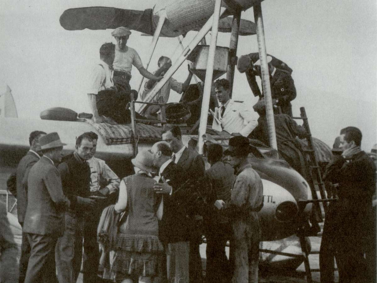 "Eles deixaram a Itália sobre a cidade Ostia, mas, devido ao peso (por causa da grande quantidade de combustível), seguiram a uma altitude que pouco superou os 100 metros e a uma velocidade média de 180 km/h", diz.
