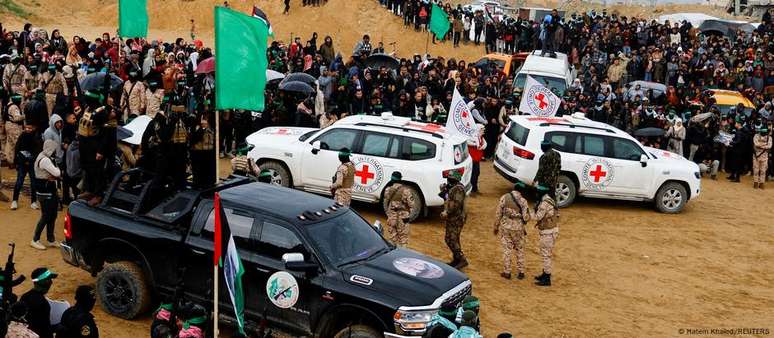 A entrega a funcionários da Cruz Vermelha foi na cidade de Khan Younis, no sul da Faixa de Gaza.