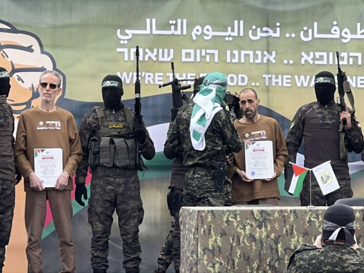 As libertação ocorreu às 10h (horário local; 6h em Brasília). Como nas cerimônias anteriores, os reféns, com aparência séria e visivelmente magros, foram escoltados por milicianos palestinos até um palco, onde dirigiram algumas palavras às centenas de habitantes de Gaza reunidos no local, antes de serem entregues a uma equipe da Cruz Vermelha, que os transportou em três veículos rumo ao território israelense.