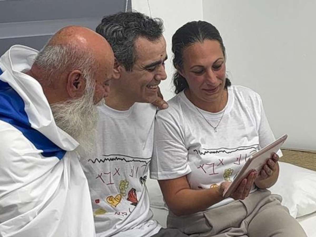 "Os reféns que retornam, Eitan Mor, Alon Ohel, Ziv Berman, Gali Berman, Guy Gilboa Dalal, Omri Miran e Matan Angrest, acompanhados por integrantes das Forças de Defesa de Israel, cruzaram a fronteira para o Estado de Israel há pouco", afirmava a mensagem das FDI.