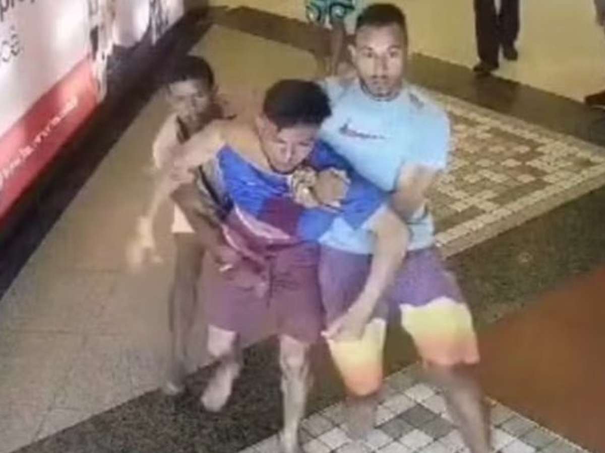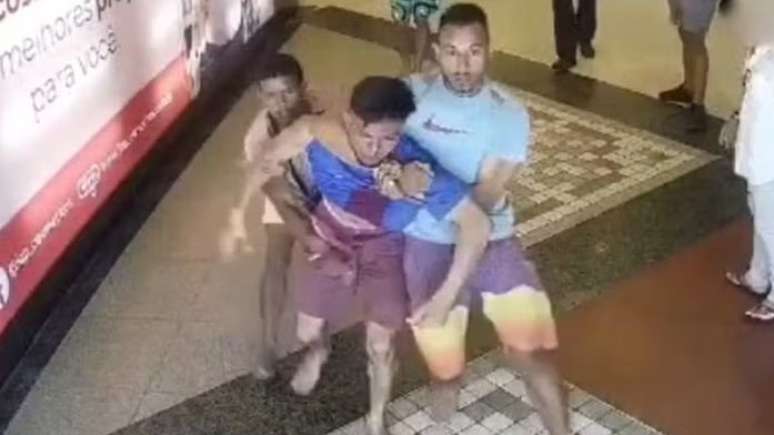 Um homem de 29 anos foi assassinado com dez tiros na calçada do Via Sul Shopping em Fortaleza, no Ceará, no último sábado, 1º. As câmeras de segurança do local registraram o momento em que dois homens lhe deram vários chutes, murros e um "mata leão". Além da dupla que agiu no interior do shoppping, um terceiro aparece nas imagens com uma blusa vermelha, dando instruções para os comparsas.