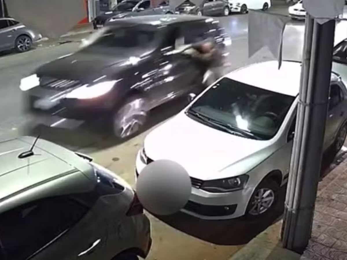 Em Patos de Minas, um homem é arrastado por carro de luxo durante briga por vaga de estacionamento