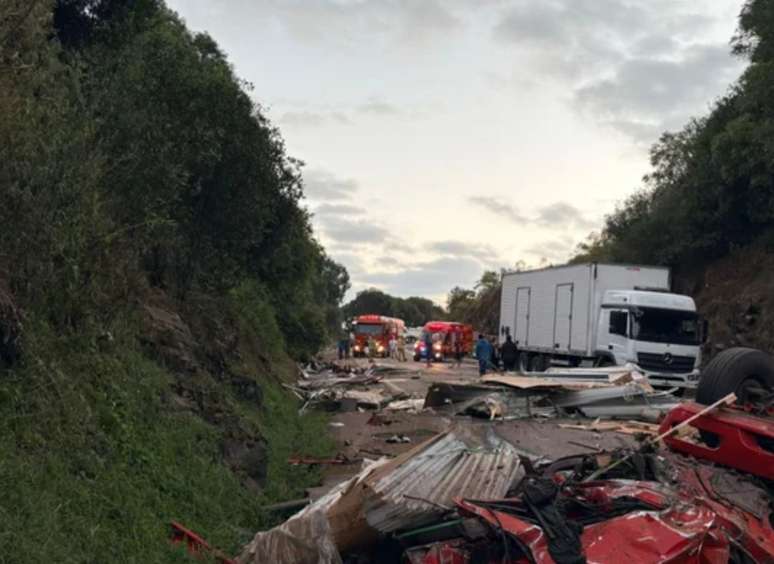 A Polícia Rodoviária Federal (PRF) informou que o trecho segue bloqueado e orienta os condutores a buscarem rotas alternativas. A perícia atua no local para apurar as causas do acidente.