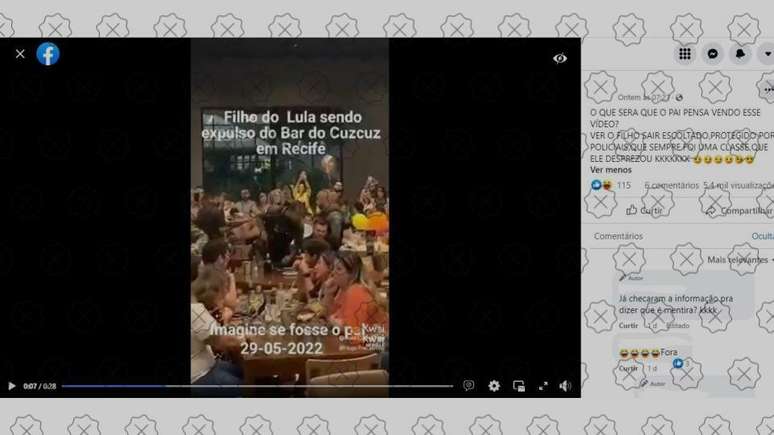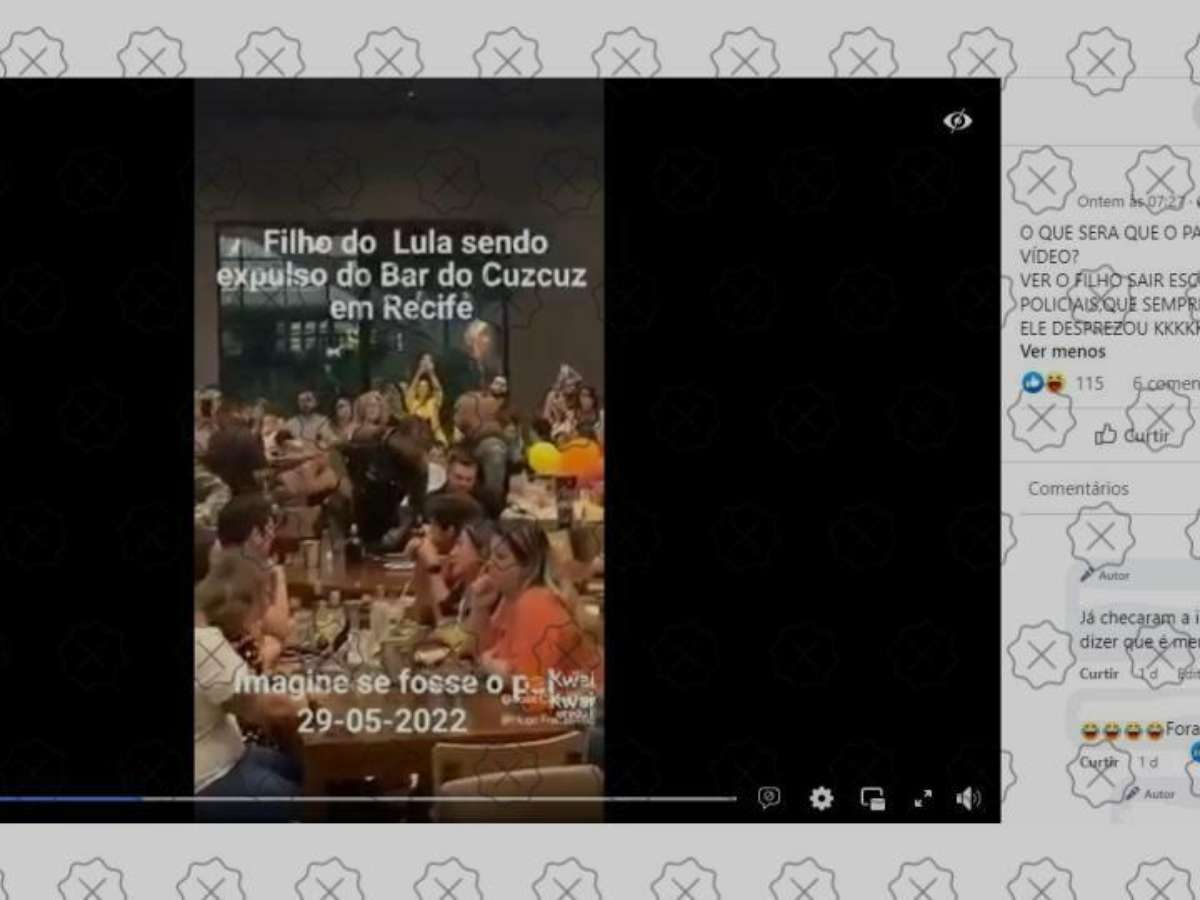 Postagens nas redes sociais enganam ao afirmar que um dos filhos do ex-presidente Luiz Inácio Lula da Silva (PT) foi expulso do Bar do Cuscuz, no Recife, em 29 de maio. Por telefone, um funcionário do estabelecimento disse que o vídeo foi gravado no dia 22, durante uma confusão que envolveu o empresário Xinxa Goes de Siqueira, conhecido como Xinxa da Cebola. As cenas mostram policiais acompanhando ele até a saída.