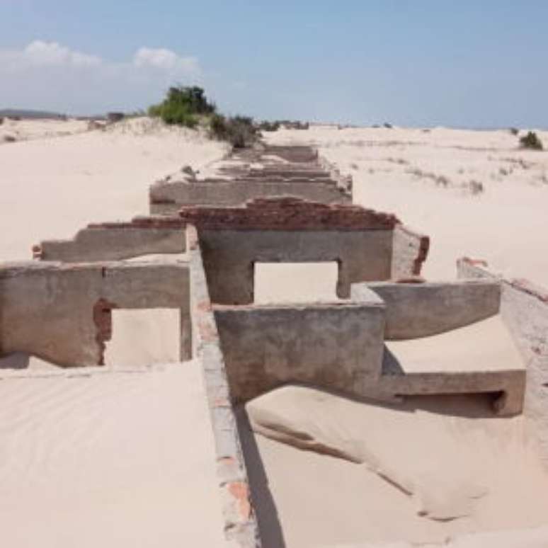 Hotel engolido pela areia intriga turistas na maior praia do mundo