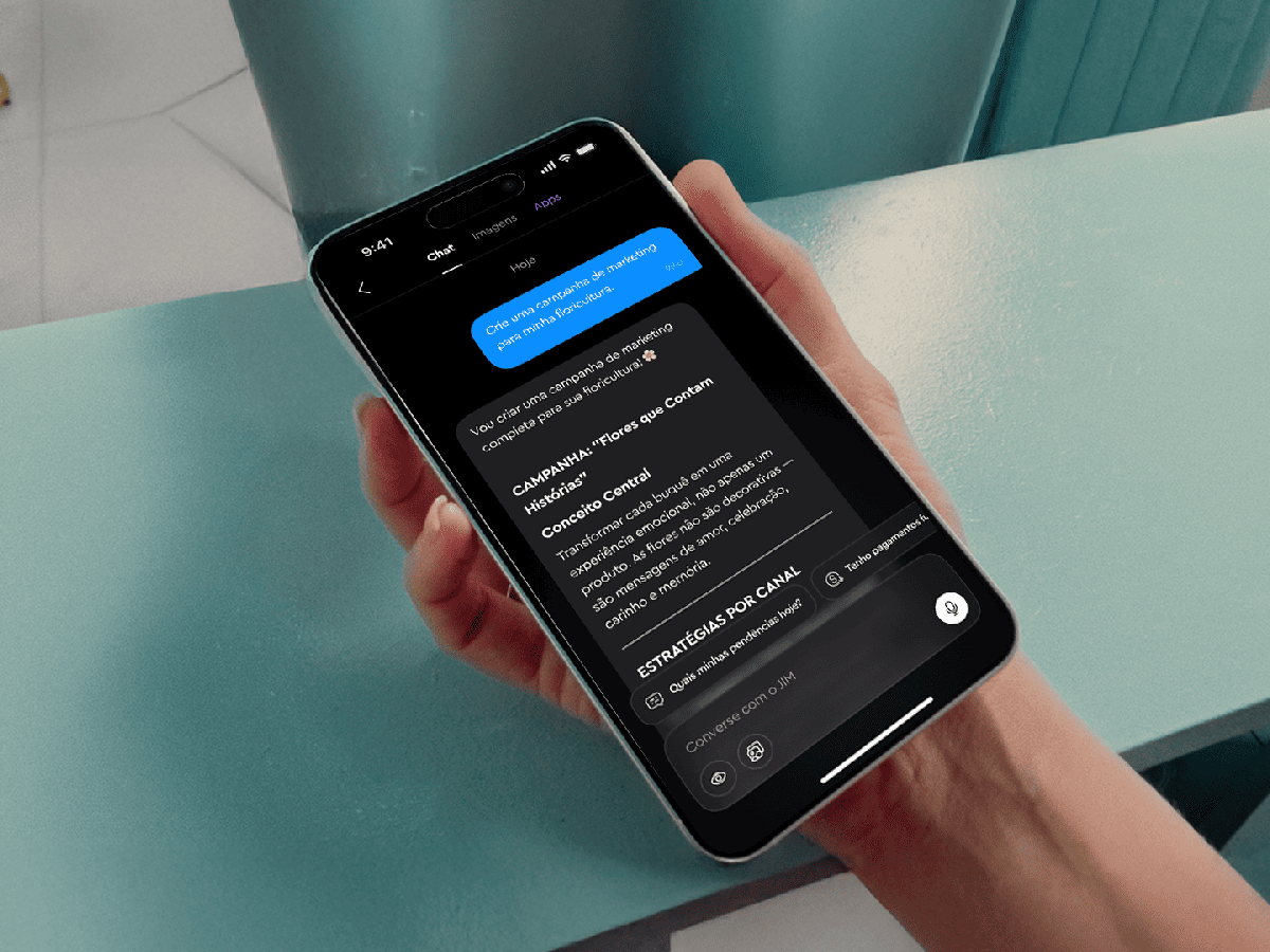 A ferramenta de criação de imagens vem ganhando cada vez mais tração dentro da plataforma, ajudando empreendedores a expor seus produtos e seu negócio em canais de comunicação. O JIM estrutura campanhas completas, sugere legendas, desenha estratégias para WhatsApp e adapta a comunicação para diferentes redes sociais.