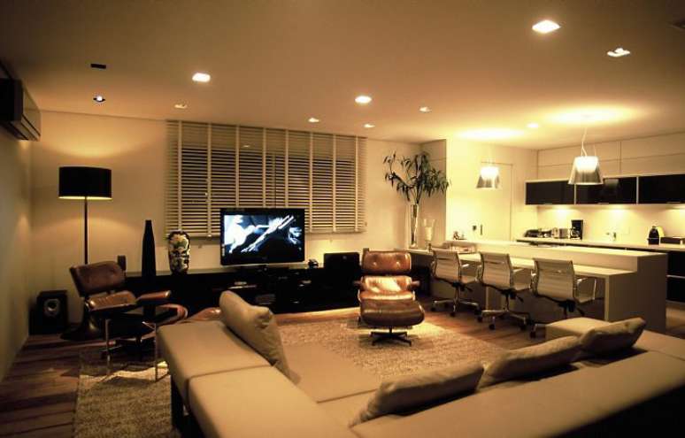 A sala normalmente é um espaço multifuncional, onde as pessoas se reúnem para conversar, assistir televisão, receber visitas. Por isso, a iluminação precisa ser versátil e adequada para todas as atividades. "O ideal é setorizar de modo a contemplar todas as funções deste cômodo. Use arandelas e abajures para criar um fluxo de luz lateral, mais difuso do que direcionado, que ajuda a trazer essa sensação de conforto e aposte em pontos de iluminação direcional para valorizar quadros e objetos específicos", diz Wardil.