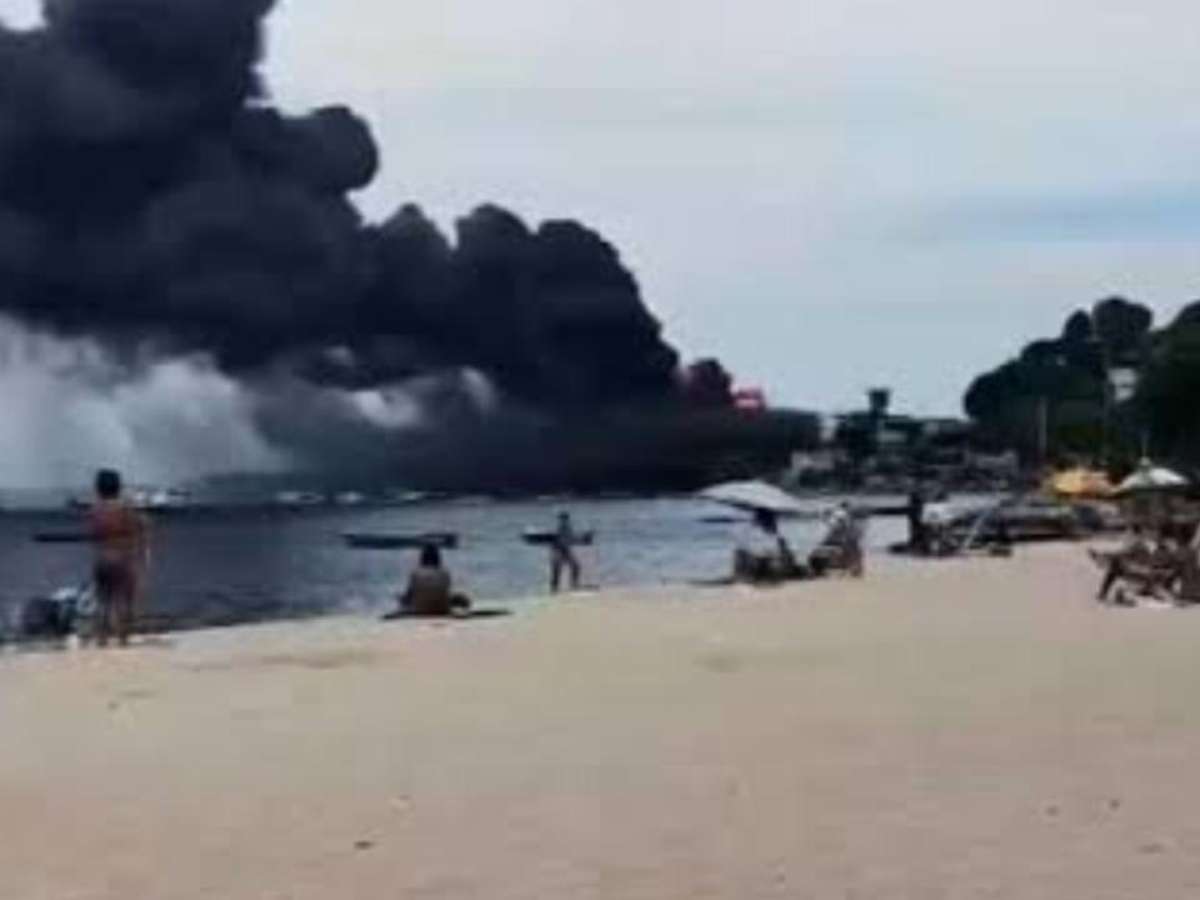 Um incêndio de grandes proporções atingiu uma fábrica de óleo combustível localizada na Ribeira, Ilha do Governador, zona norte do Rio de Janeiro, neste sábado (8).
