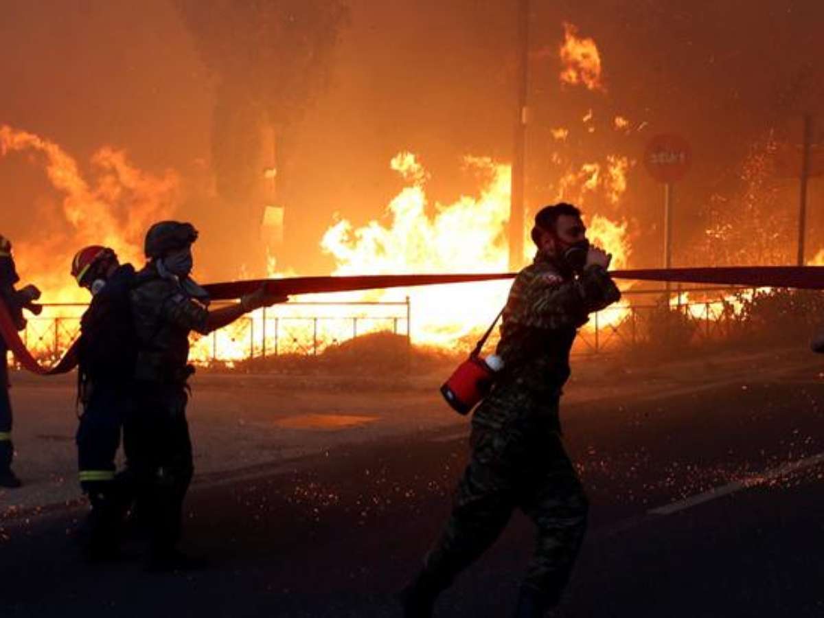 Um primeiro incêndio florestal começou no nordeste de Atenas, na área de Penteli, estendendo-se à cidade de Rafina. Em Mati, a guarda costeira enviou um barco de patrulha para retirar as pessoas de uma praia que ficou cercada pelas chamas.