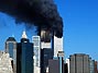 FUmaça preta das torres em chamas contrasta com céu azul de Nova York