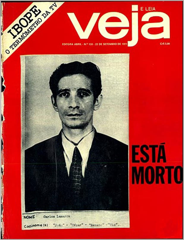 A revista Veja noticiou a morte de Lamarca na matéria “A cena final de um terrorista”, em 22/09/71. O texto retrata um Lamarca com delírios de grandeza abastecidos antes por um temperamento autoritário que por qualquer mérito intelectual. A reportagem contesta atributos “imerecidos”, como a suposta hierarquia de liderança ocupada por Lamarca nos “grupos terroristas”. Lamarca seria um tipo quixotesco, “cavalgando por planícies imaginárias à frente de tropas inexistentes”.