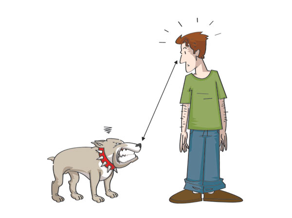 Evitar olhar diretamente para o focinho do cão; o cachorro encara como uma afronta esse tipo de comportamento.