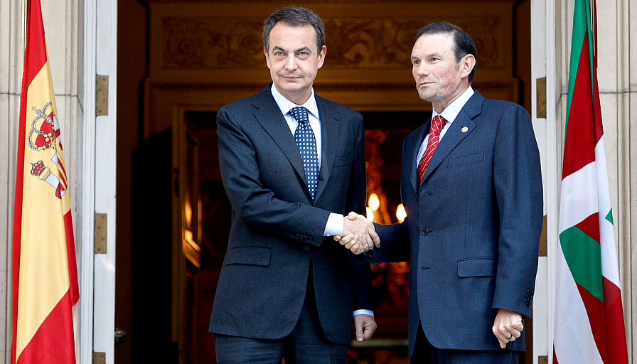 O premiê espanhol, José Luís Zapatero, se encontra com o premiê basco, Juan José Ibarretxe, no Palácio de La Moncloa - Foto: Getty Images