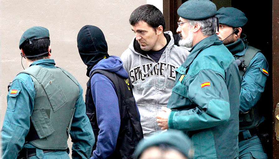 Igor Esnaola Dorronsoro, suposto membro do ETA, é levado por policiais de sua casa em Legorreta, em 2011 - Foto: AFP