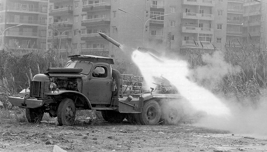 Foto da Guerra Civil libanesa mostra foguete katysha sendo disparado de caminhão; israelenses e futuros membros do Hezbollah participaram