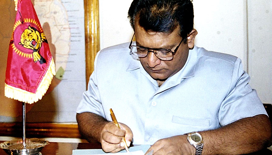 O líder Velupillai Prabhakaran assina cessar-fogo em Kilinochchi, em 2002 - Foto: AFP
